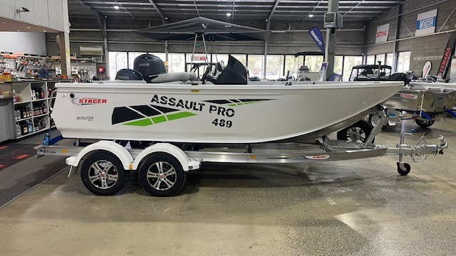 The 489 Assault Pro is perfect for fishing estuaries, rivers and lakes. With a live bait tank in the rear casting platform and a 65L fuel tank you can stay out on the water all day long or until you land the perfect catch.